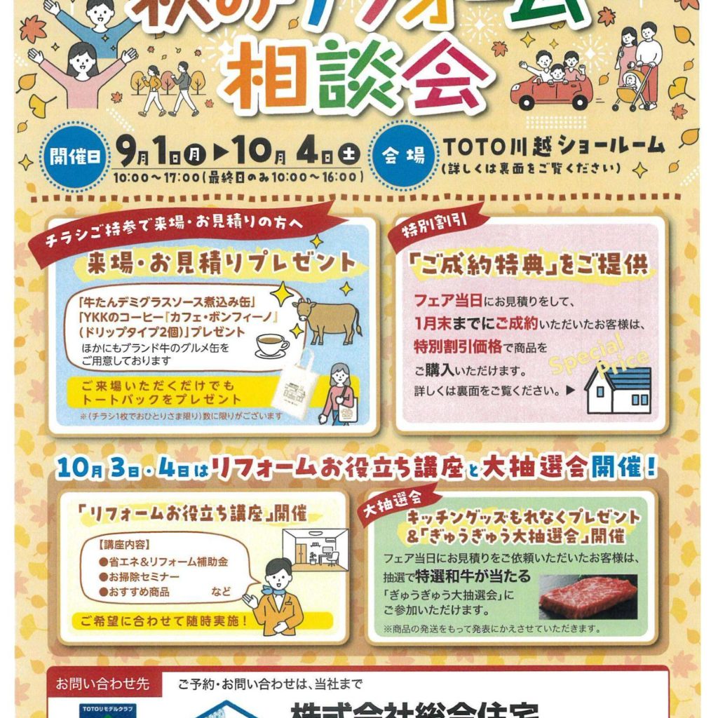 あっという間に9月終わりになってしまいましたね!12月の着工工事のお問合せをお待ちしております!